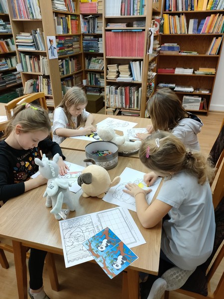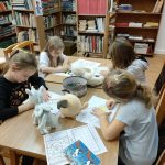 Dzieci mogły oglądać portrety znanych Misiów, rozwiązywać zagadki, kolorować rysunki i oczywiście czytać i wypożyczać książki o naszym ulubionym bohaterze. Wszyscy, którzy wzięli udział w misiowych zabawach otrzymali dyplomy i misiowe korony. Tego dnia w bibliotece było bardzo kolorowo i wesoło.