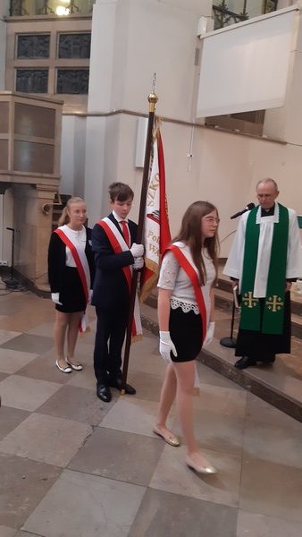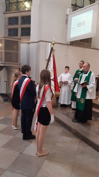 Dokonując poświęcenia nowego sztandaru, proboszcz parafii ks. Henryk Bartuszek podkreślił, że jest to dla naszej szkoły historyczna chwila. Rodzice i uczniowie naszej szkoły zaangażowali się czynnie w jej przebieg, m.in. czytając czytania biblijne i modlitwę wiernych, a także śpiewając psalm.
