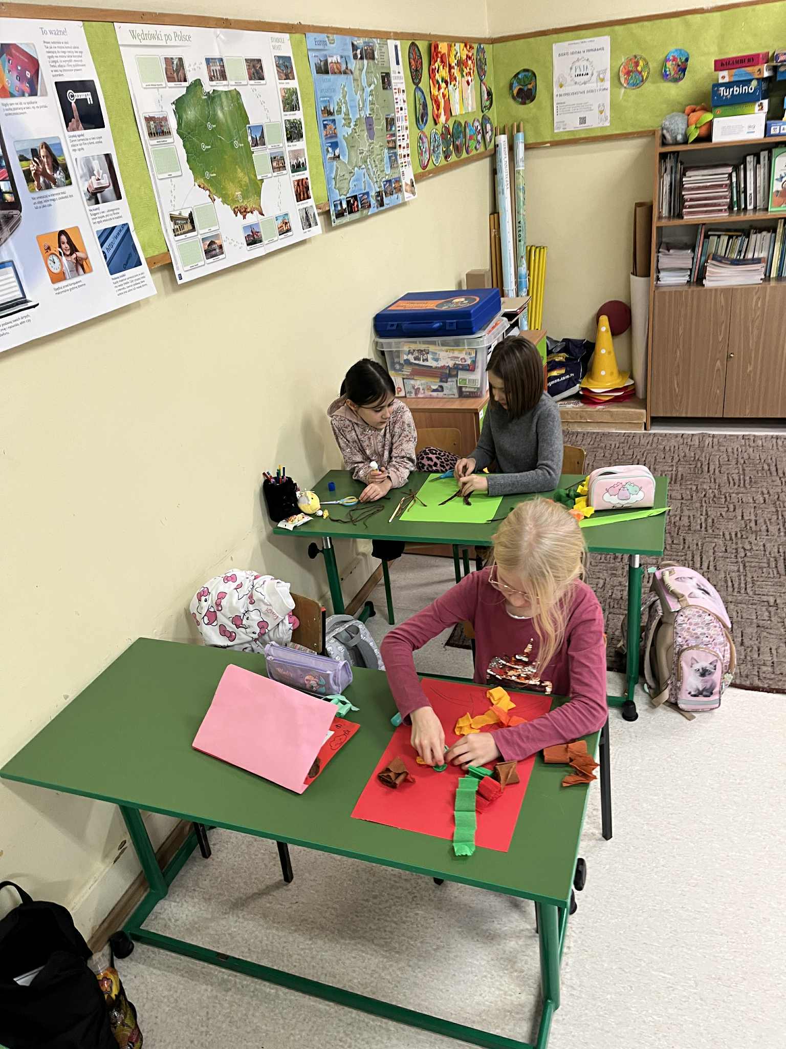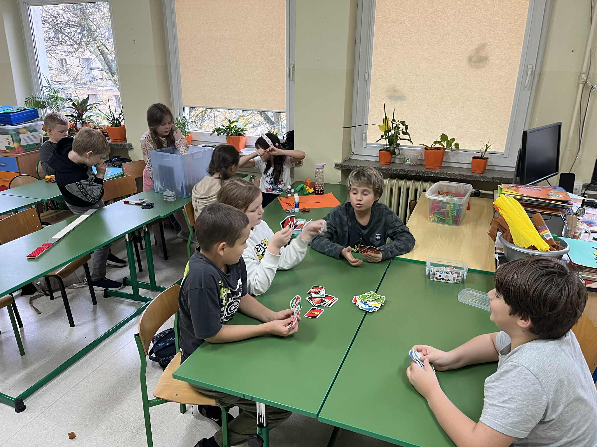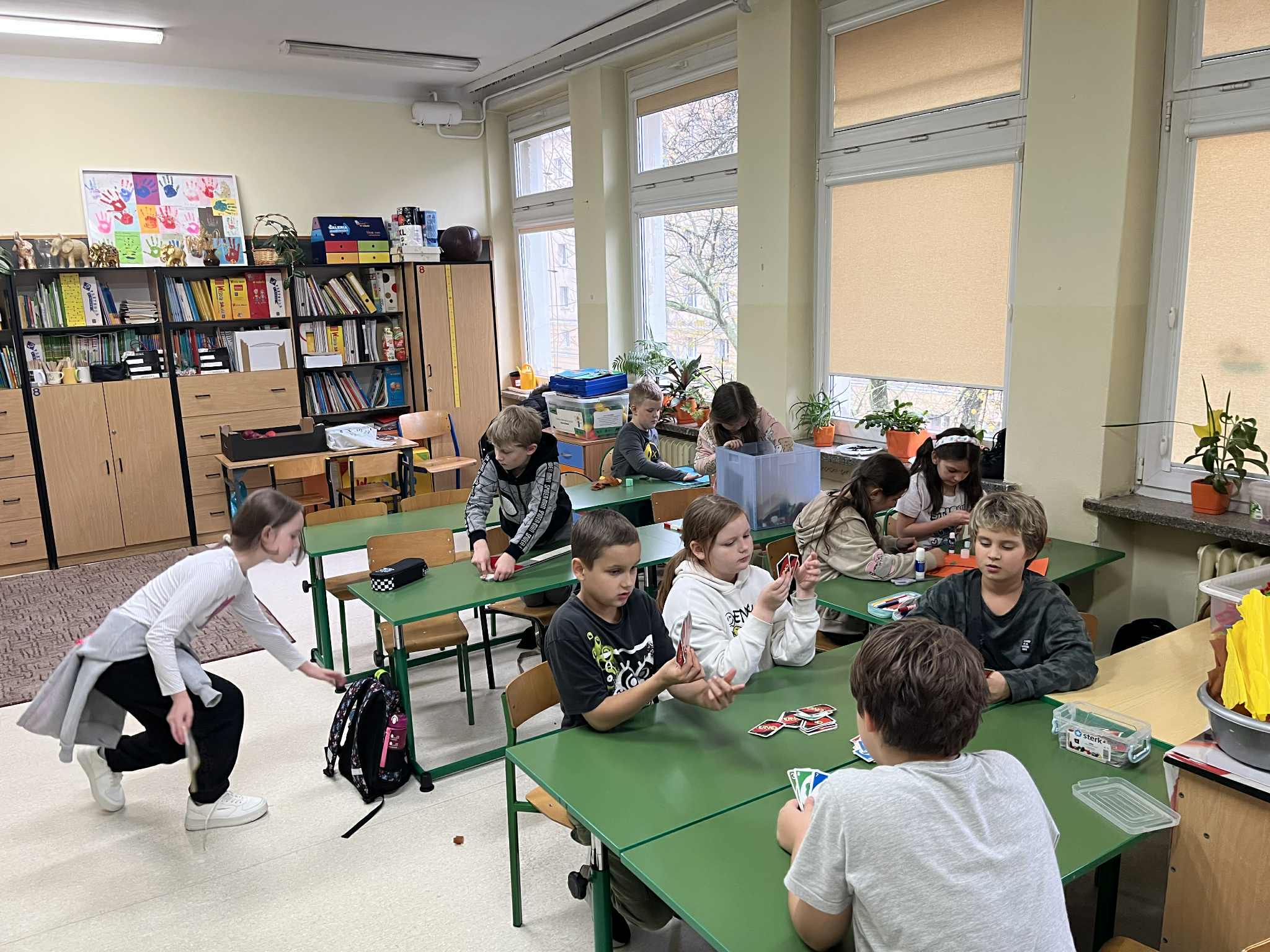 - W świetlicy obowiązuje całkowity zakaz używania telefonów komórkowych i innych urządzeń mobilnych zatem czas wolny uczniowie spędzają aktywnie korzystając z zajęć, gier planszowych, klocków, zabawek.