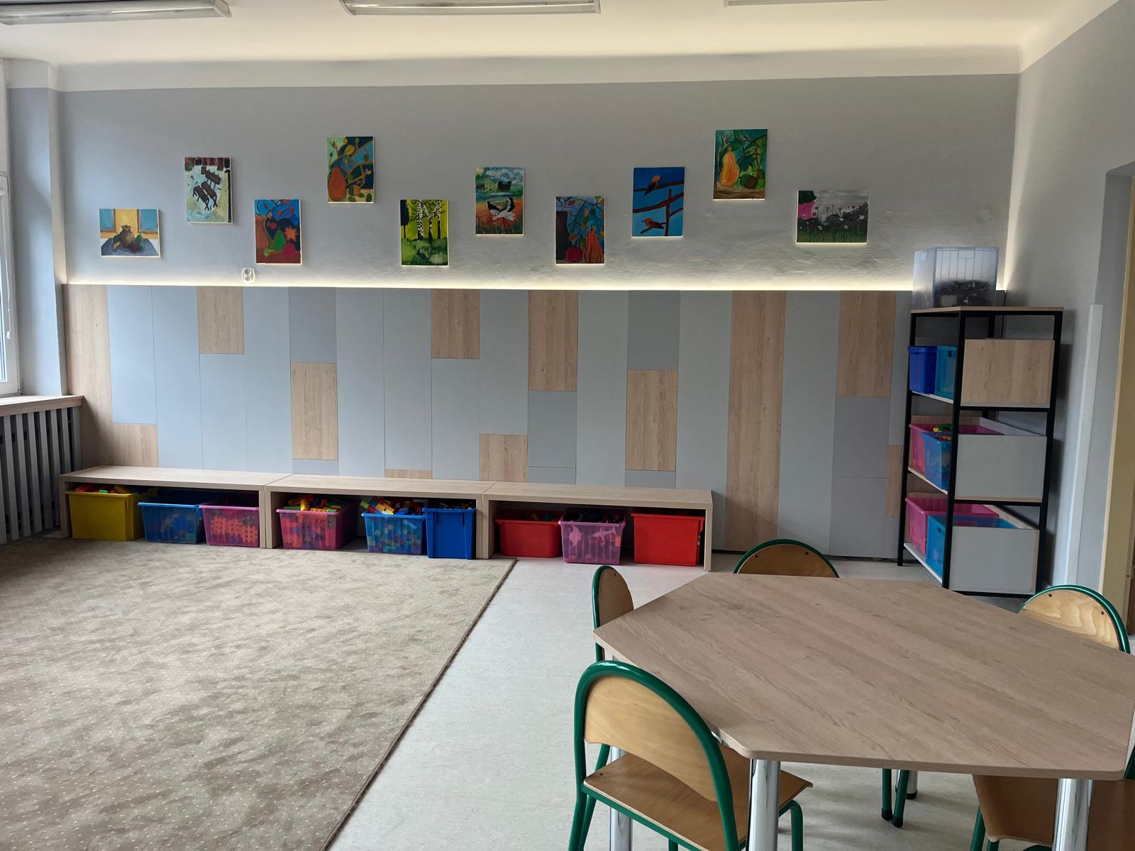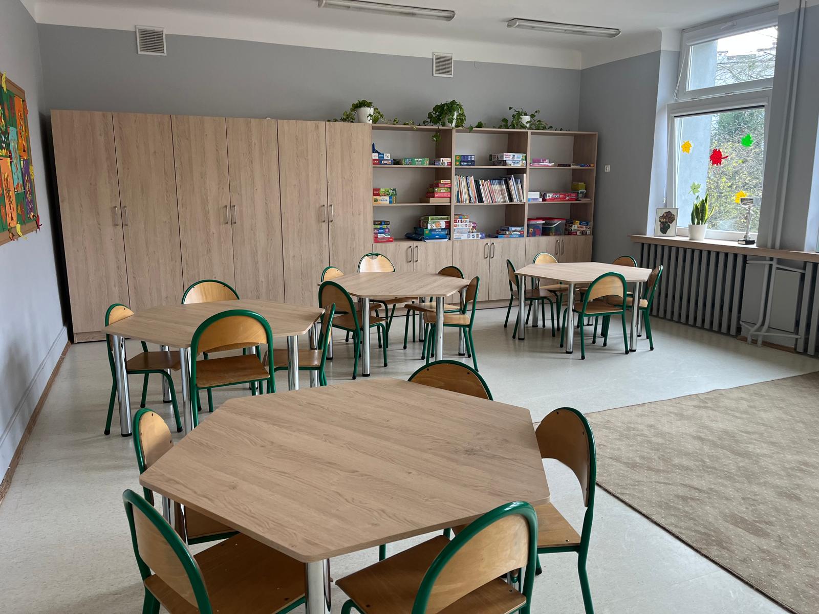 Niedawno nasza świetlica została wyremontowana i teraz wygląda naprawdę pięknie. Ściany pomalowano na jasny kolor, pojawiły się nowe meble i kąciki do zabawy oraz nauki. Mamy też wiele nowych klocków, gier planszowych i książek. Dzięki temu dzieci jeszcze chętniej spędzają tu czas — bawią się razem, odrabiają lekcje i uczestniczą w różnych zajęciach. W świetlicy panuje miła, przyjazna atmosfera, a każdy czuje się tu dobrze i bezpiecznie.