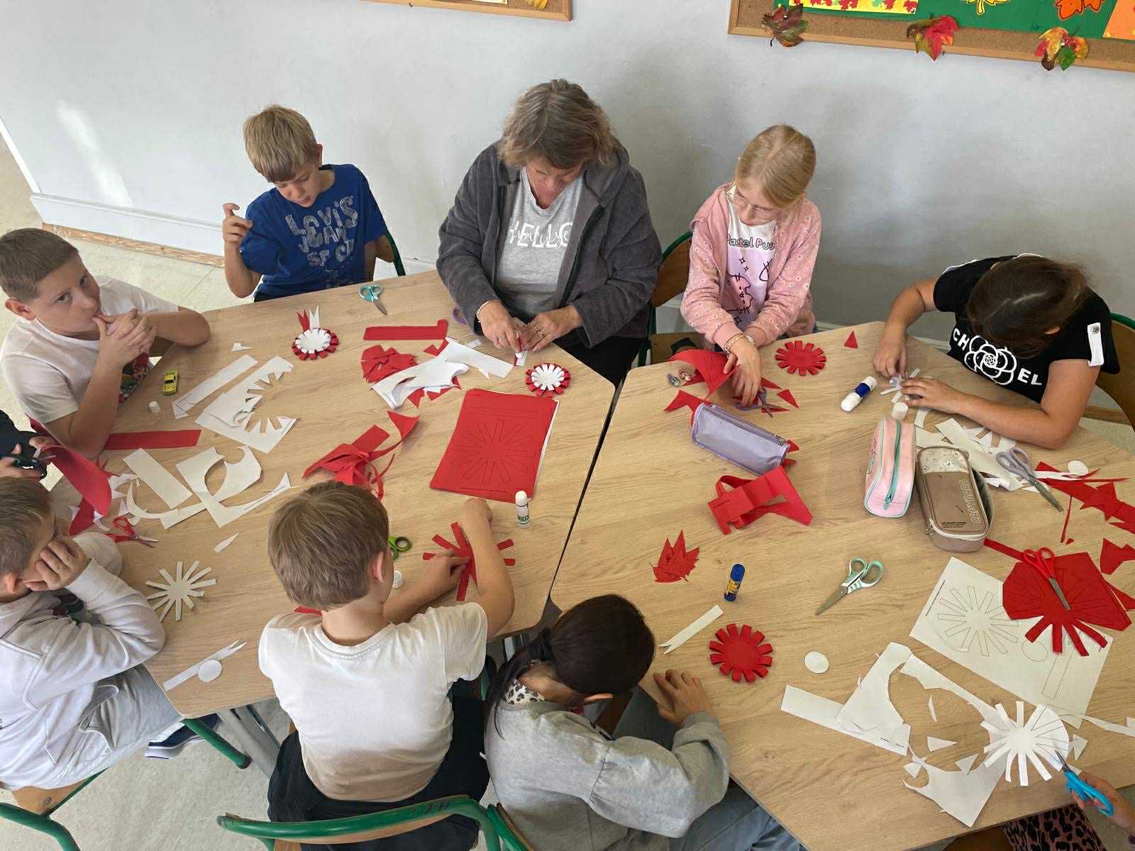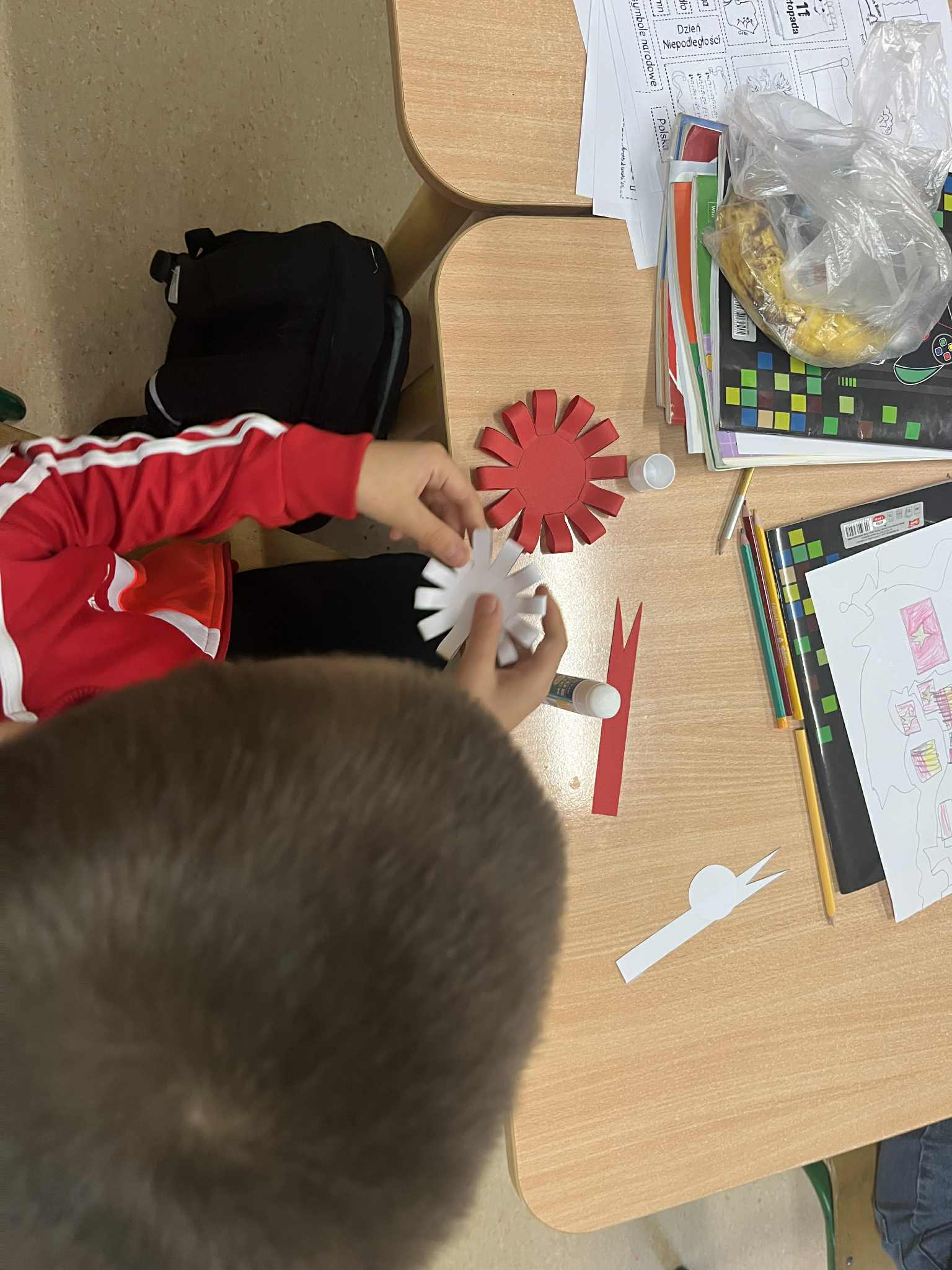 Świetlica z pasją - uczniowie wykonują prace plastyczne związane z nadchodzącym Świętem Odzyskania Niepodległości.
