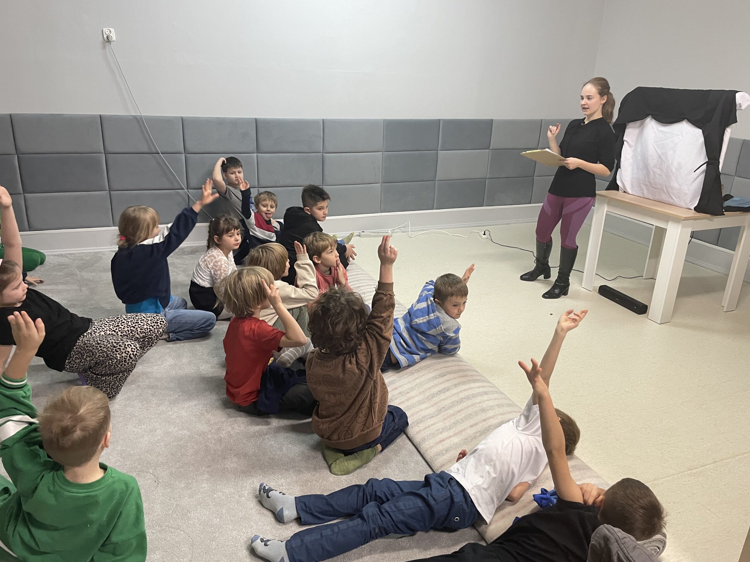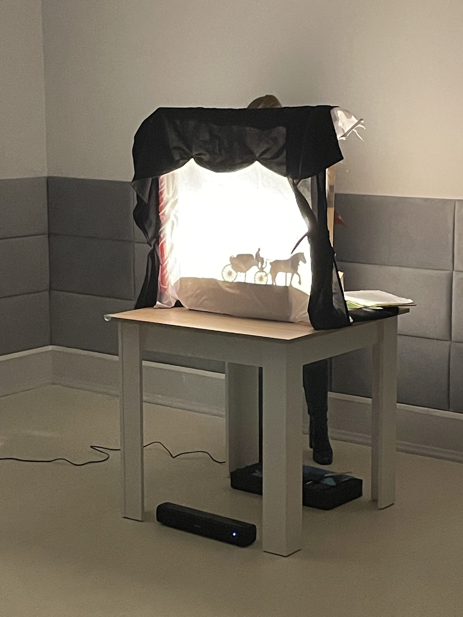 Dzieci oglądały spektakl „Legendy Polskie”, a następnie samodzielnie tworzyły własne papierowe sylwetki bohaterów. Uczyły się również, jak operować światłem i ekranem, aby ich postacie były dobrze widoczne.