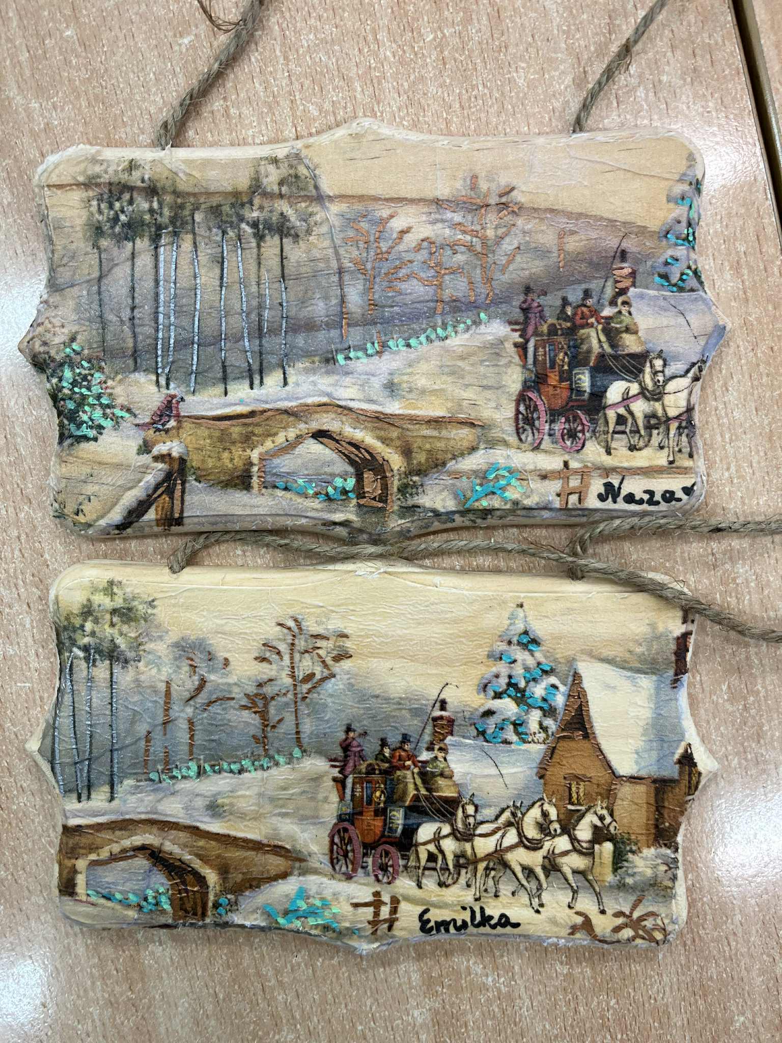 Uczniowie na kole poznali technikę decoupage - pokrywali deseczki serwetkami, suszyli, domalowywali elementy flamastrami akrylowymi. Efekt był wspaniały. Za tydzień zaczynamy tworzyć świąteczne bombki techniką decoupage.