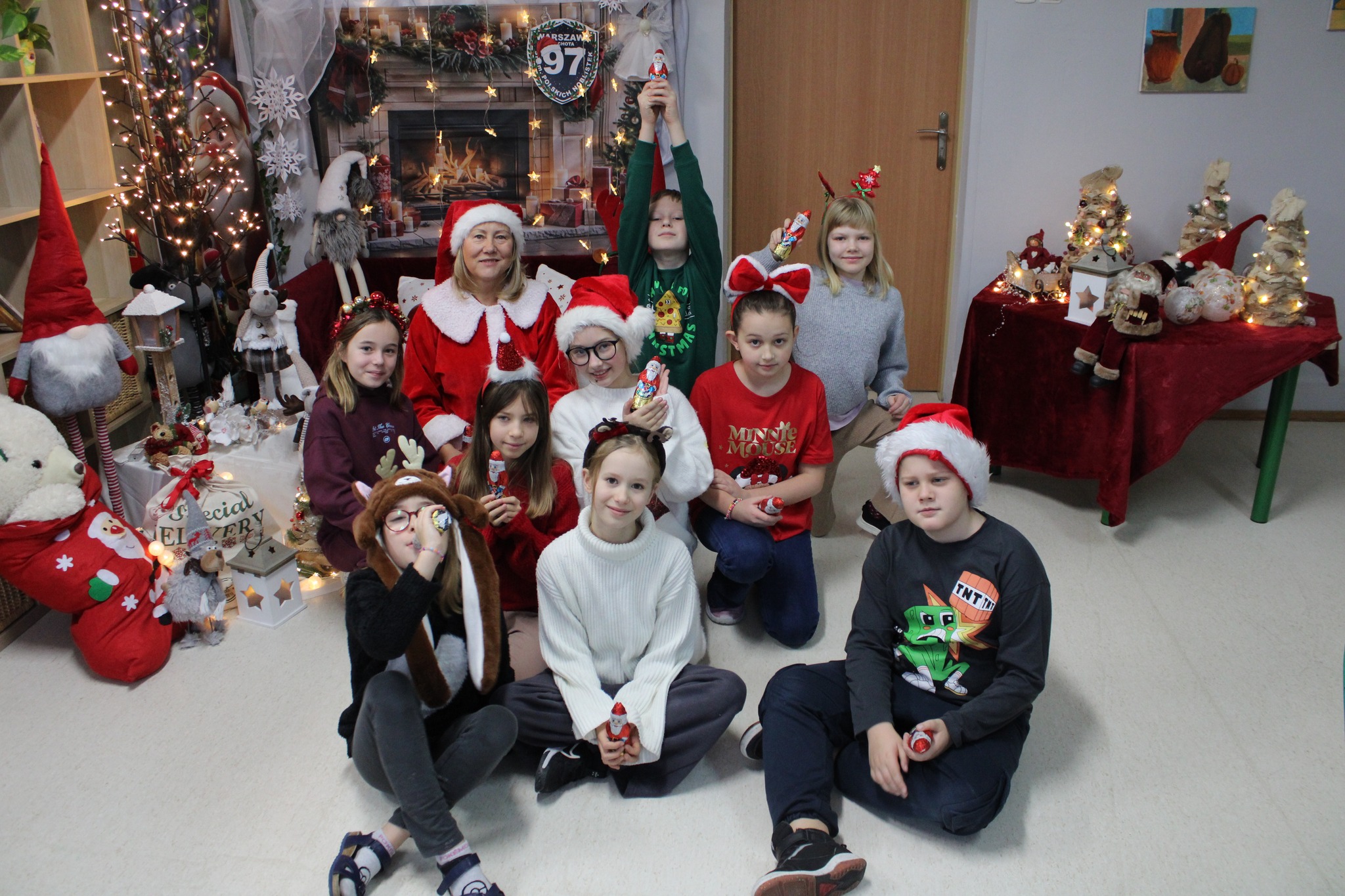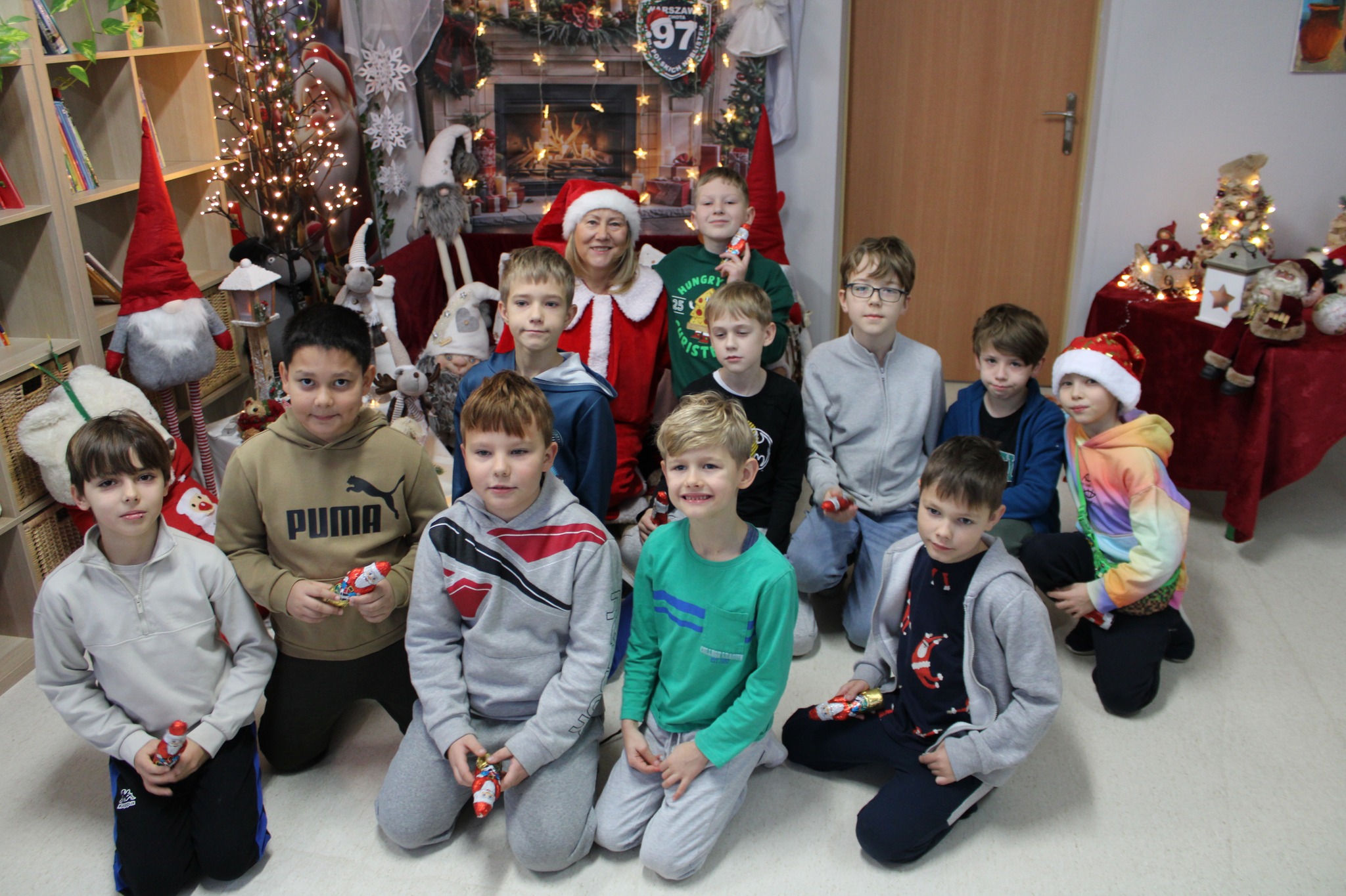 Najbardziej emocjonującym momentem było oczywiście rozdawanie upominków. Mikołajowa wręczała każdemu dziecku słodycze, a na twarzach uczniów pojawiały się szerokie uśmiechy. Spotkanie zakończyło się wspólnym śpiewaniem piosenek i serdecznym pożegnaniem.