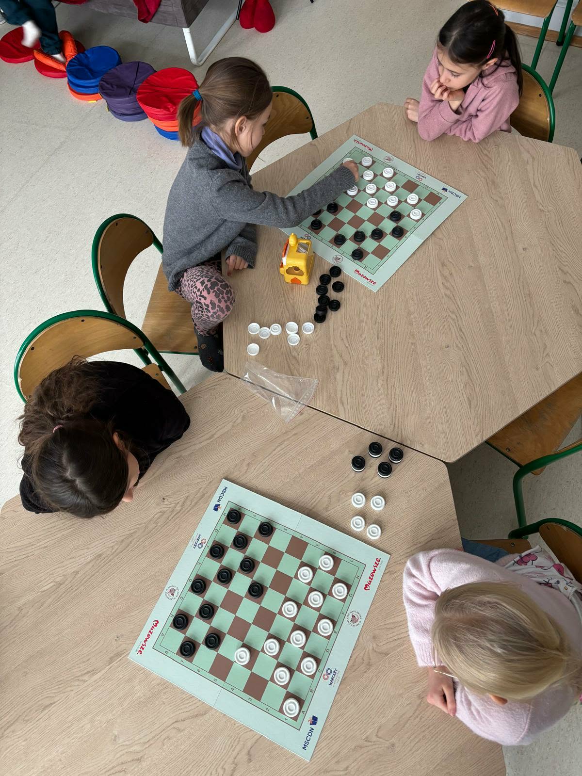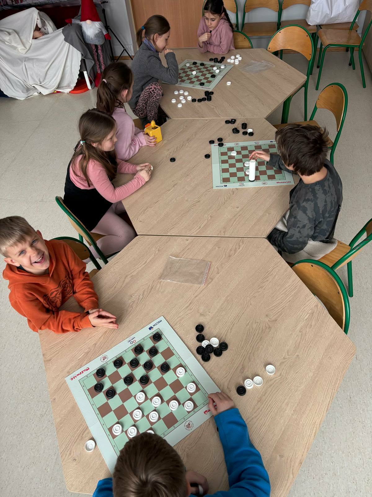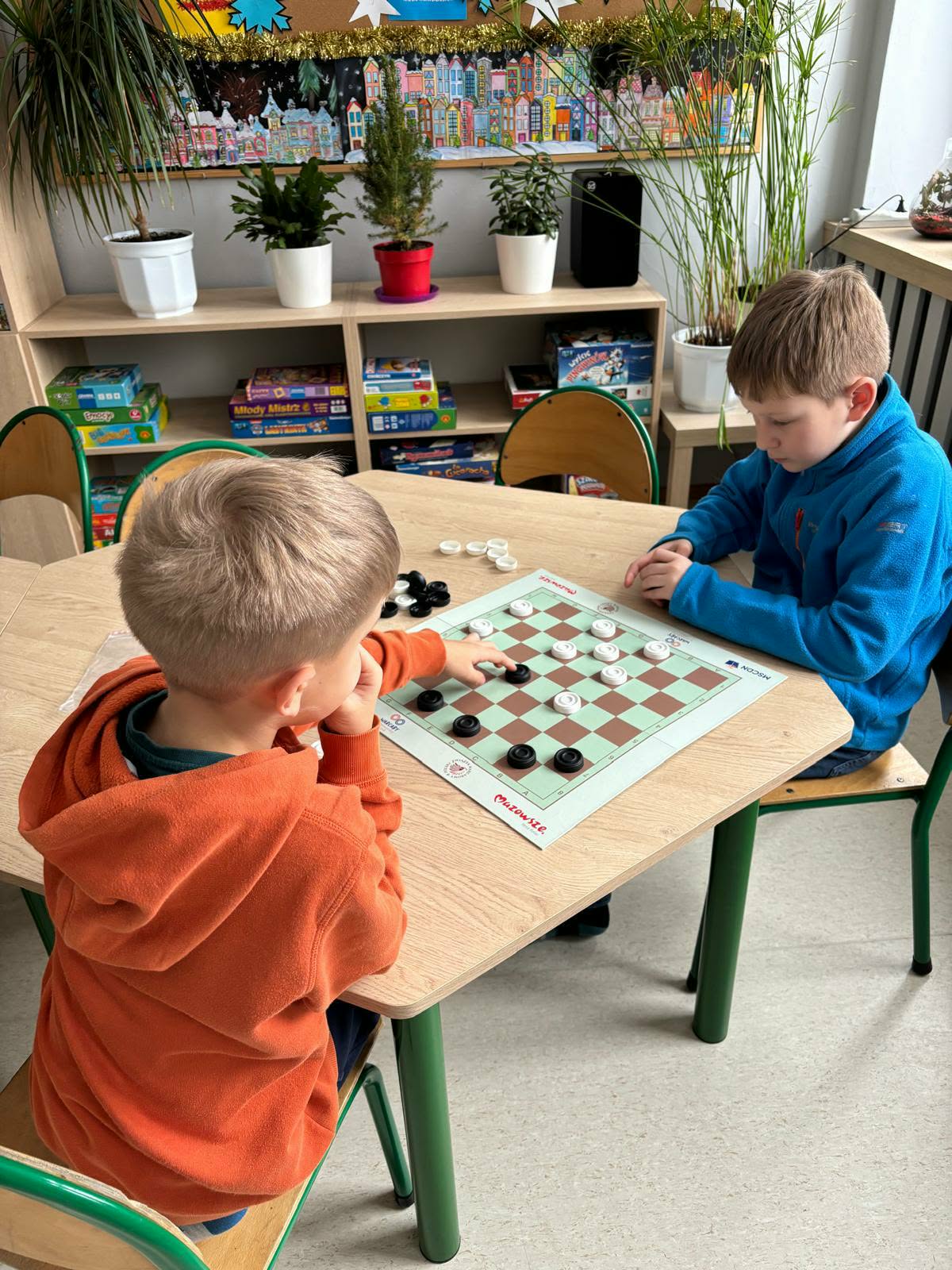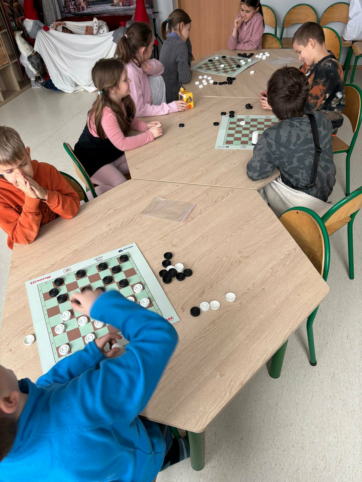 Dzieci chętnie grają w warcaby w świetlicy, traktując je zarówno jako zabawę, jak i sposób na naukę. Podczas gry uczą się logicznego myślenia, cierpliwości oraz zasad fair play. Wspólne rozgrywki sprzyjają integracji i budowaniu relacji między rówieśnikami.
