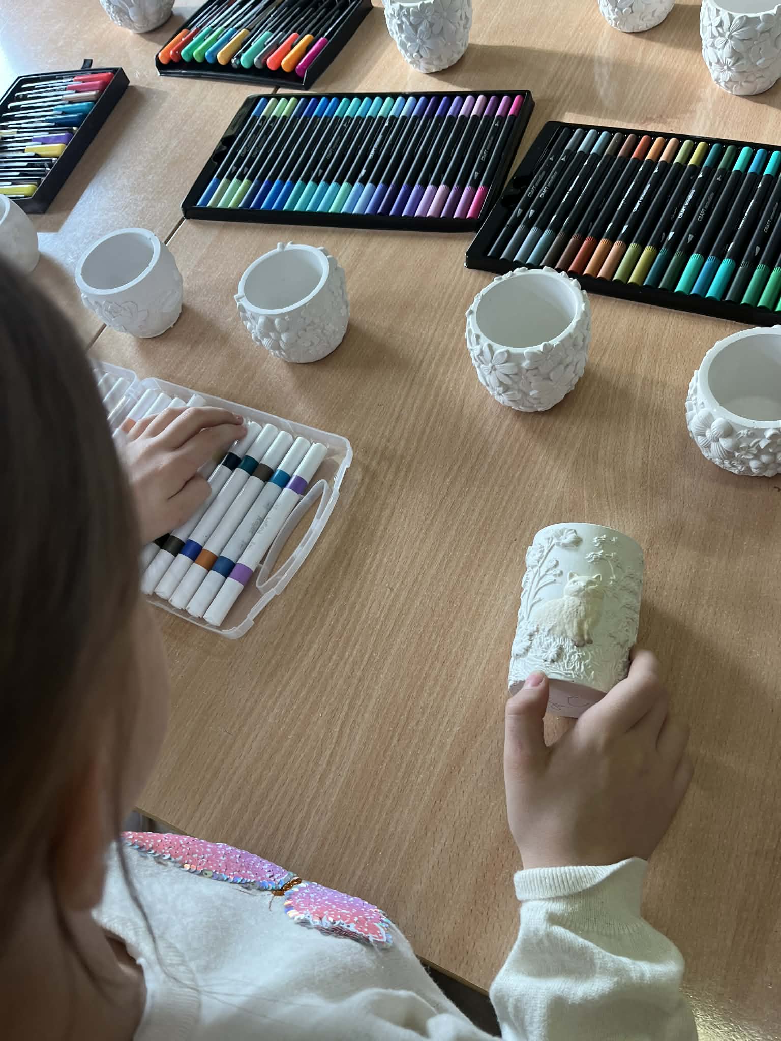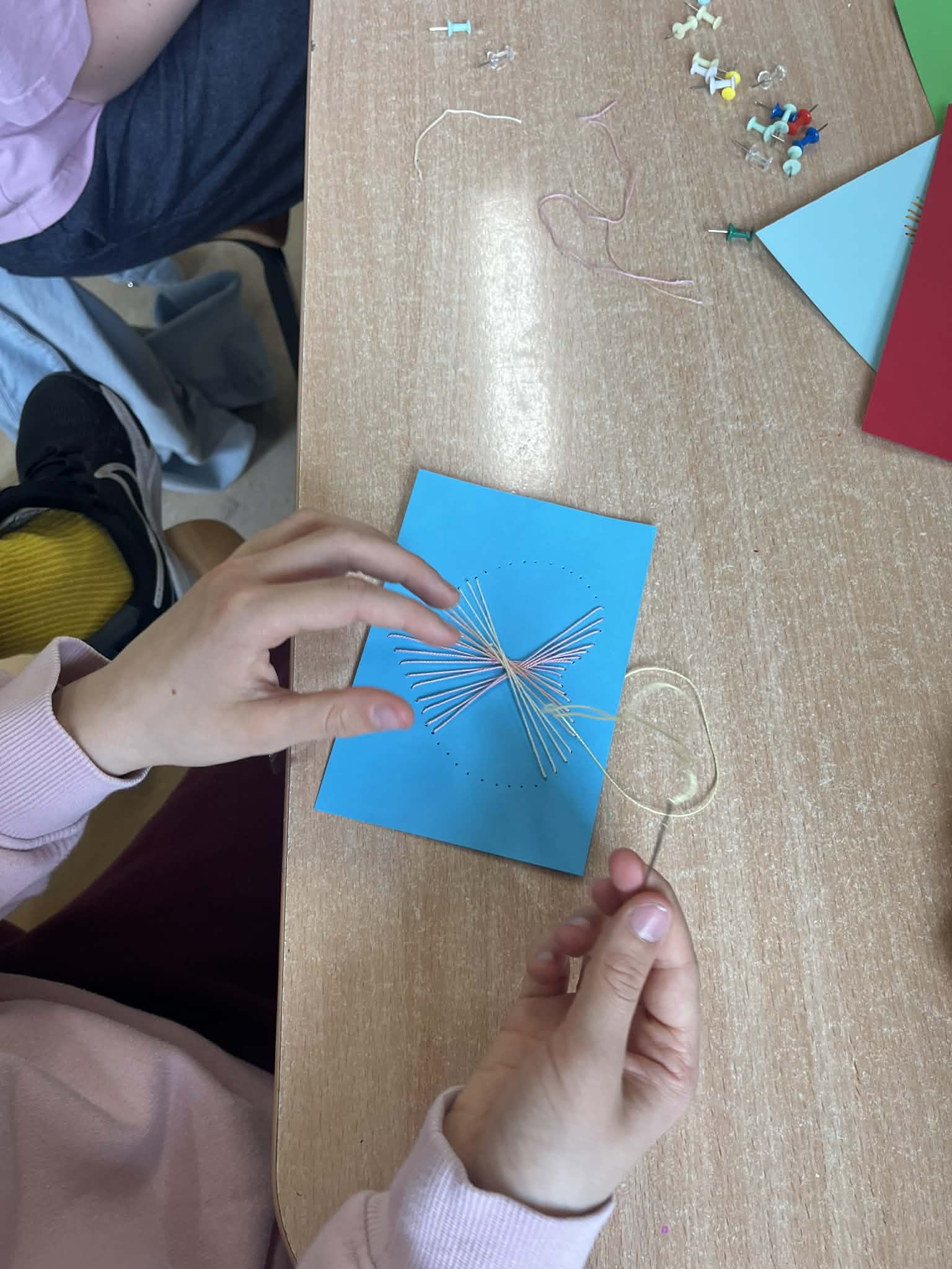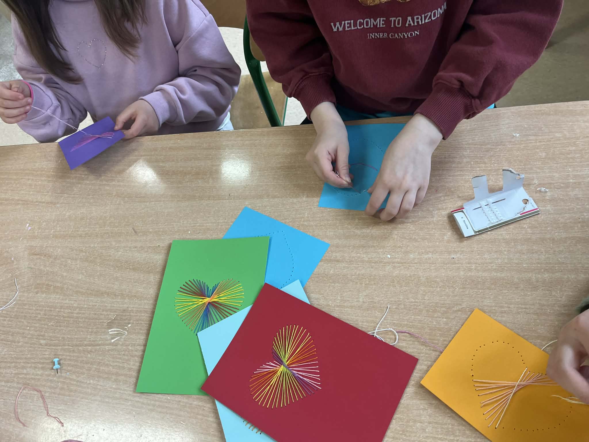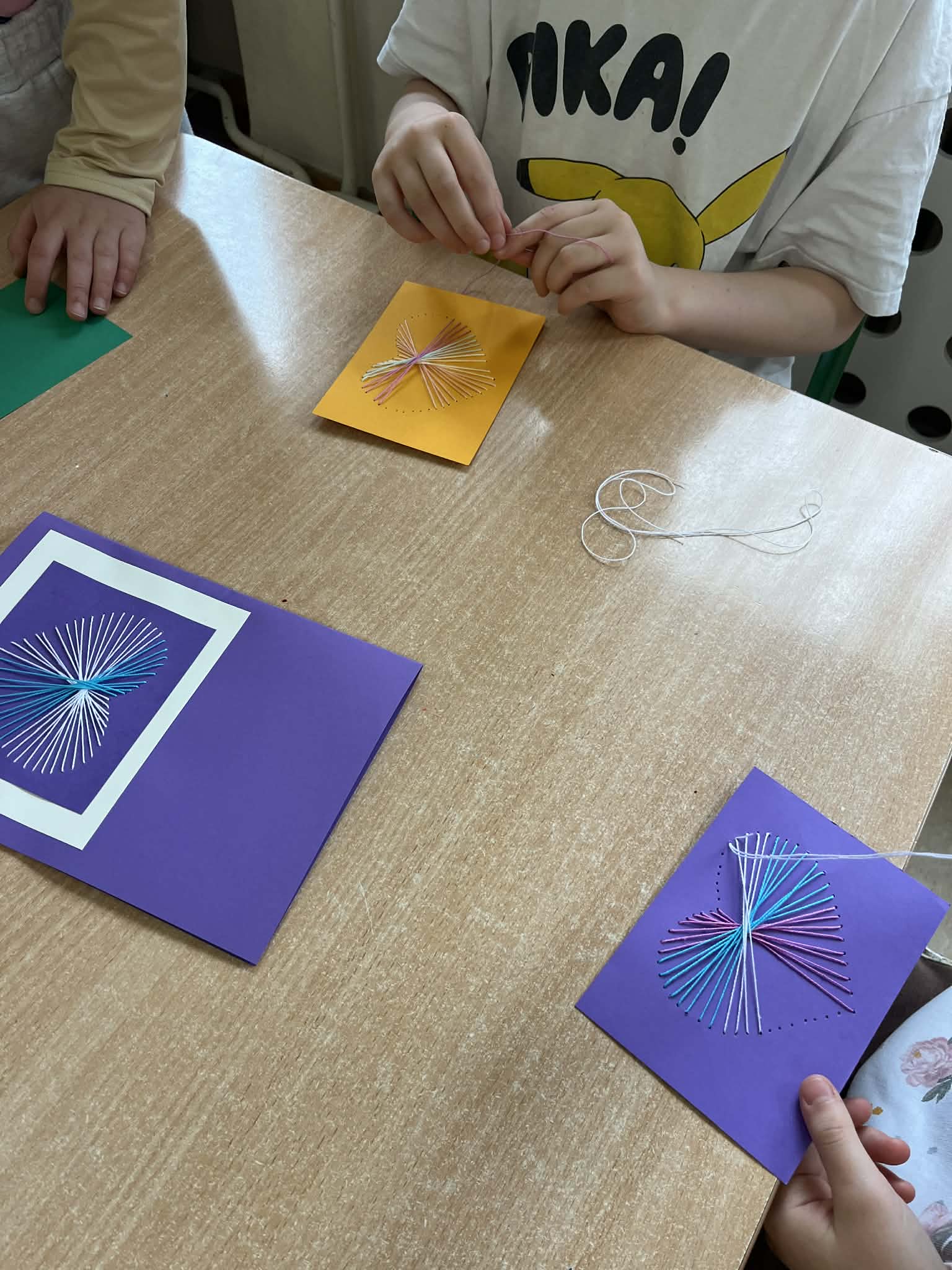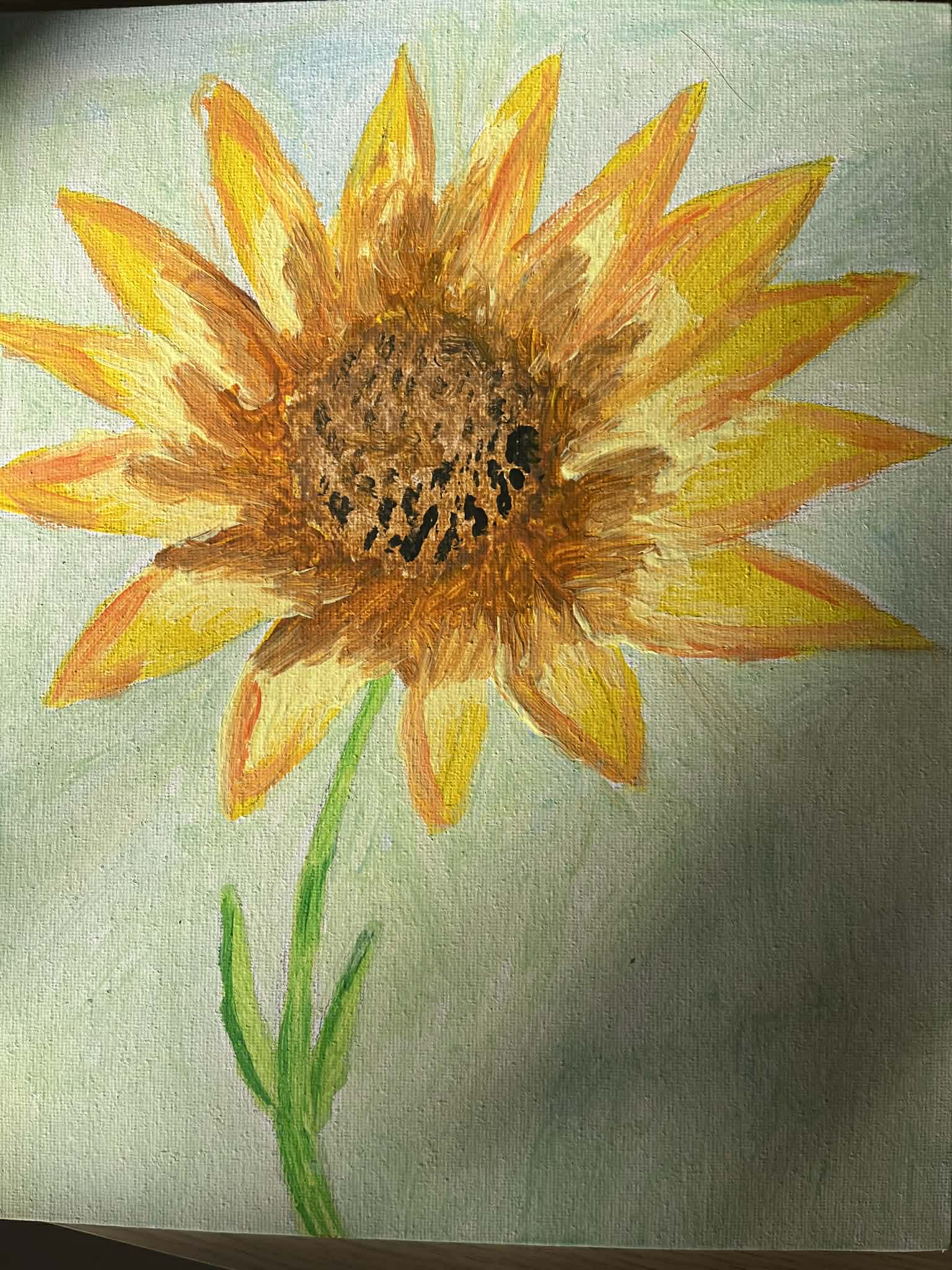 Ciąg dalszy malowania farbami na magnesach pokrytych płótnem. Dzisiaj młodzi artyści malowali zachód słońca.