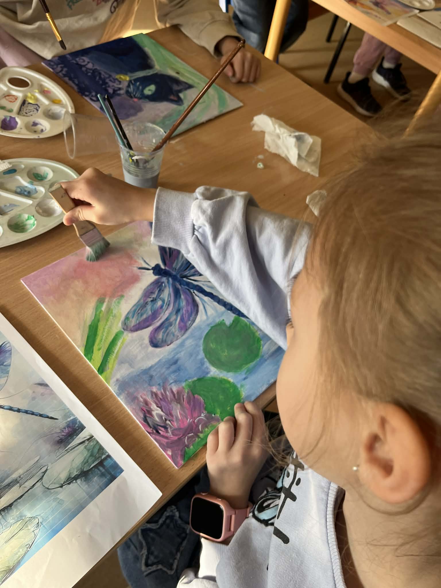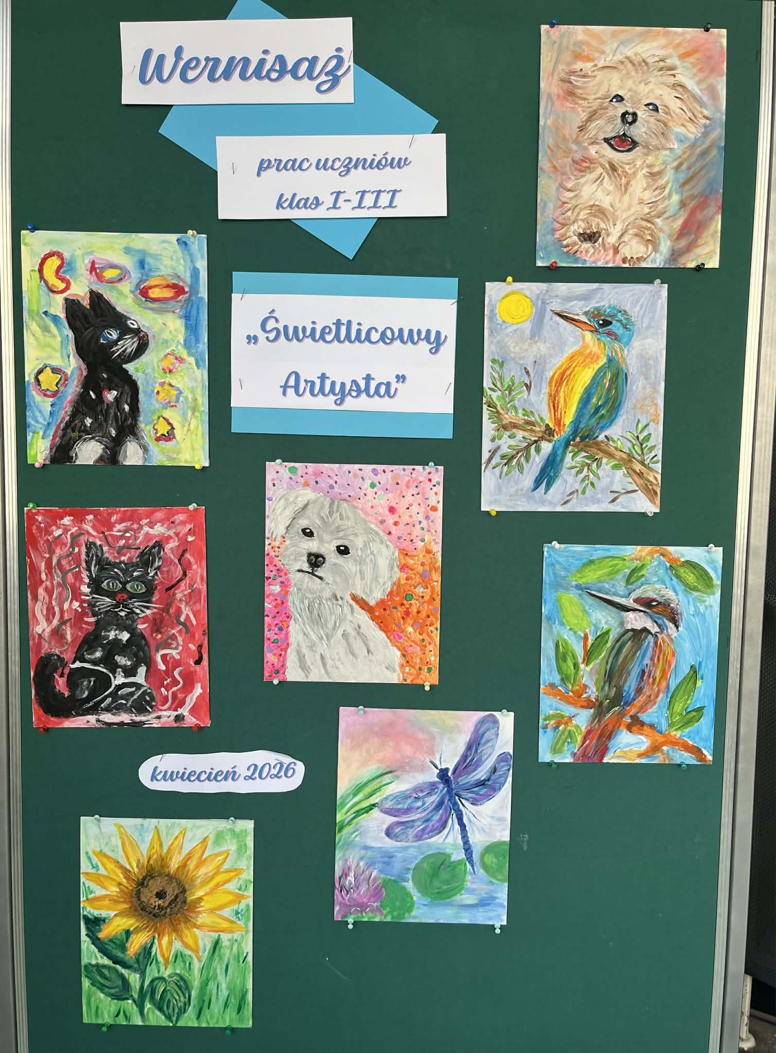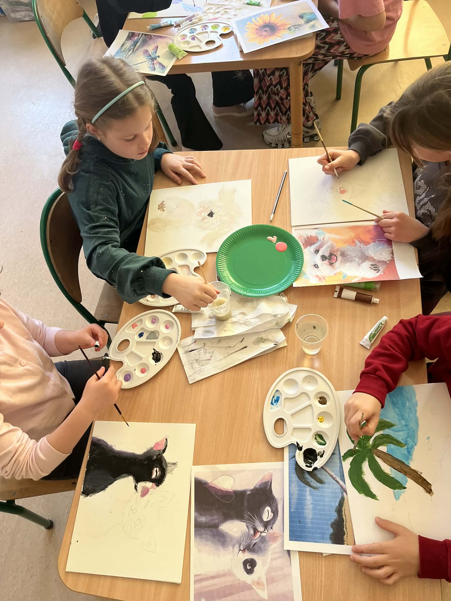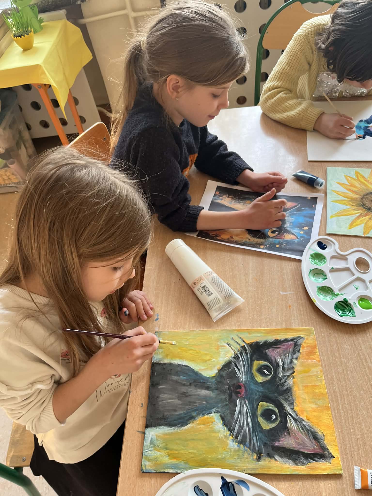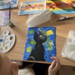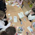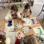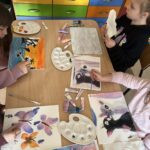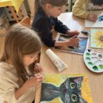Rozpoczęliśmy malowanie obrazków na płótnie. Powoli powstają przepiękne prace. Uczymy się dobierania kolorów, komponowania przestrzeni. Obecnie korzystamy z gotowych wzorów. Na koniec zorganizujemy wystawę prac. Dziękuję za tak ogromne zainteresowanie. Mamy zdolnych i młodych artystów. „Talent masz w sobie, pozwól go odkryć i rozwinąć”.