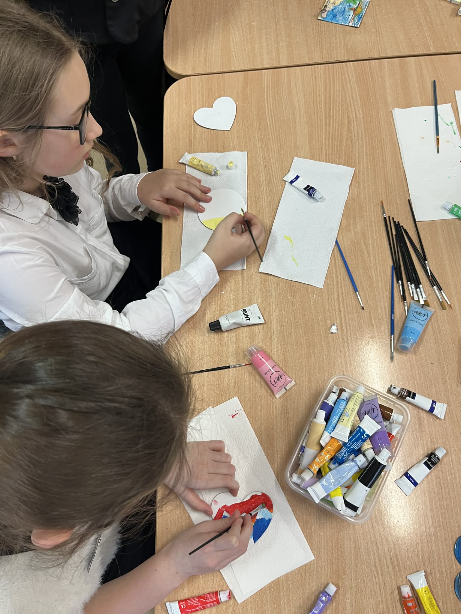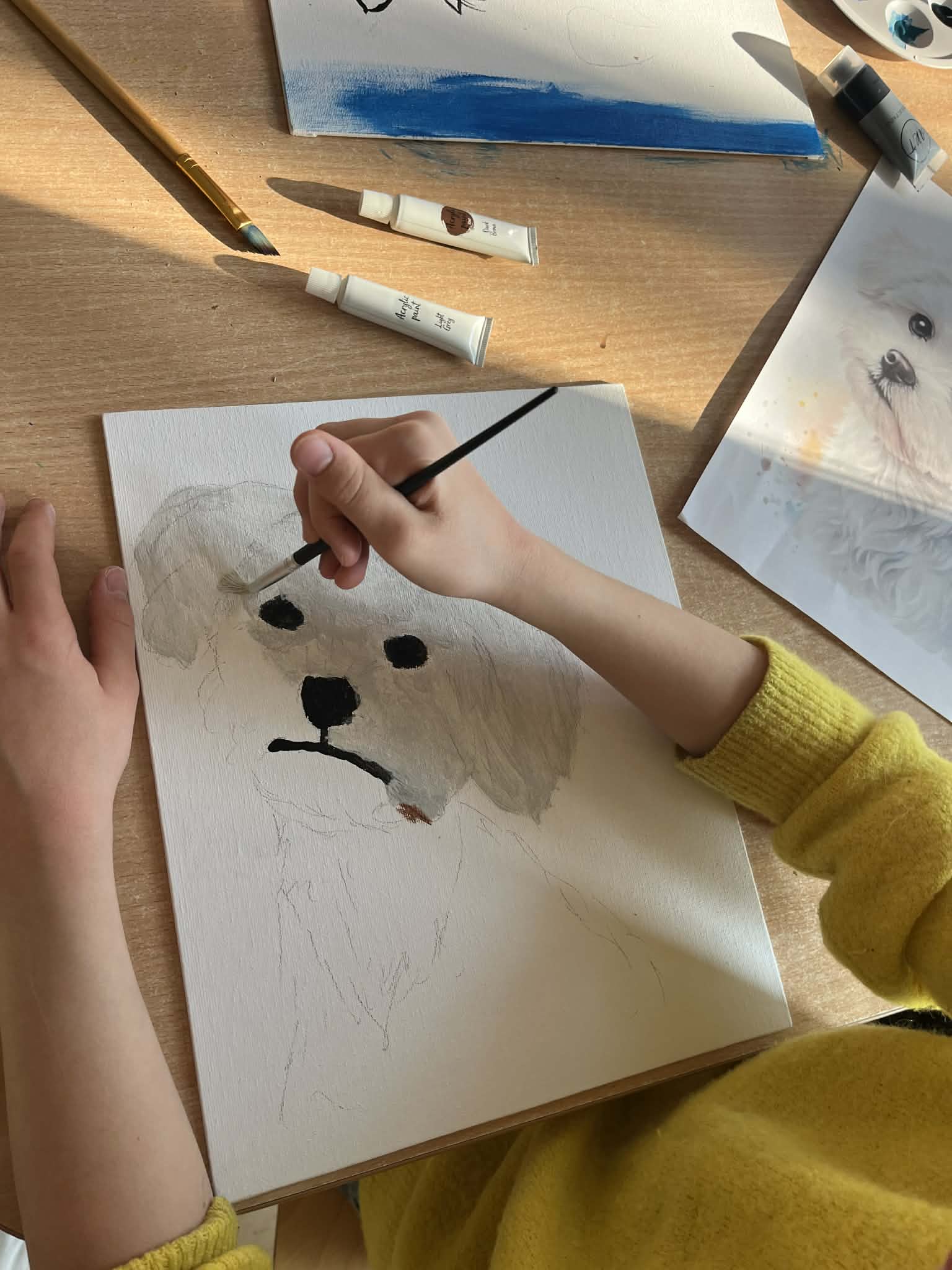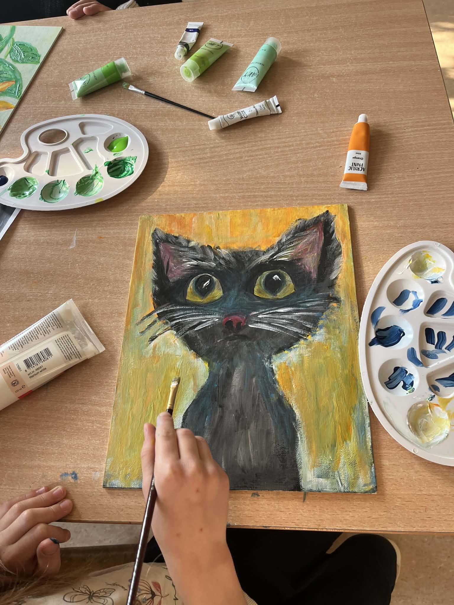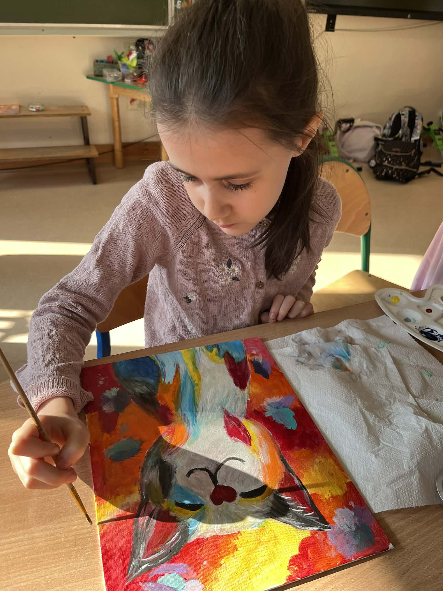 Rozpoczęliśmy malowanie obrazków na płótnie. Powoli powstają przepiękne prace. Uczymy się dobierania kolorów, komponowania przestrzeni. Obecnie korzystamy z gotowych wzorów. Na koniec zorganizujemy wystawę prac. Dziękuję za tak ogromne zainteresowanie. Mamy zdolnych i młodych artystów. „Talent masz w sobie, pozwól go odkryć i rozwinąć”.