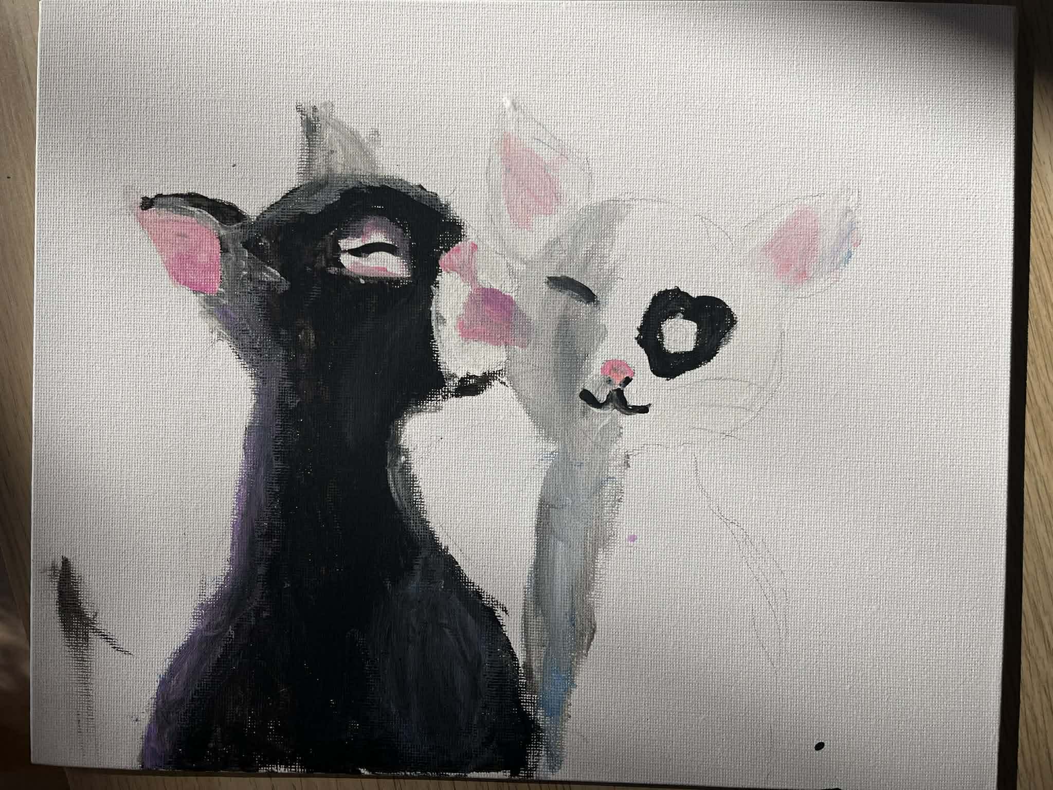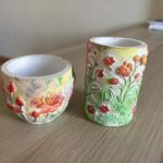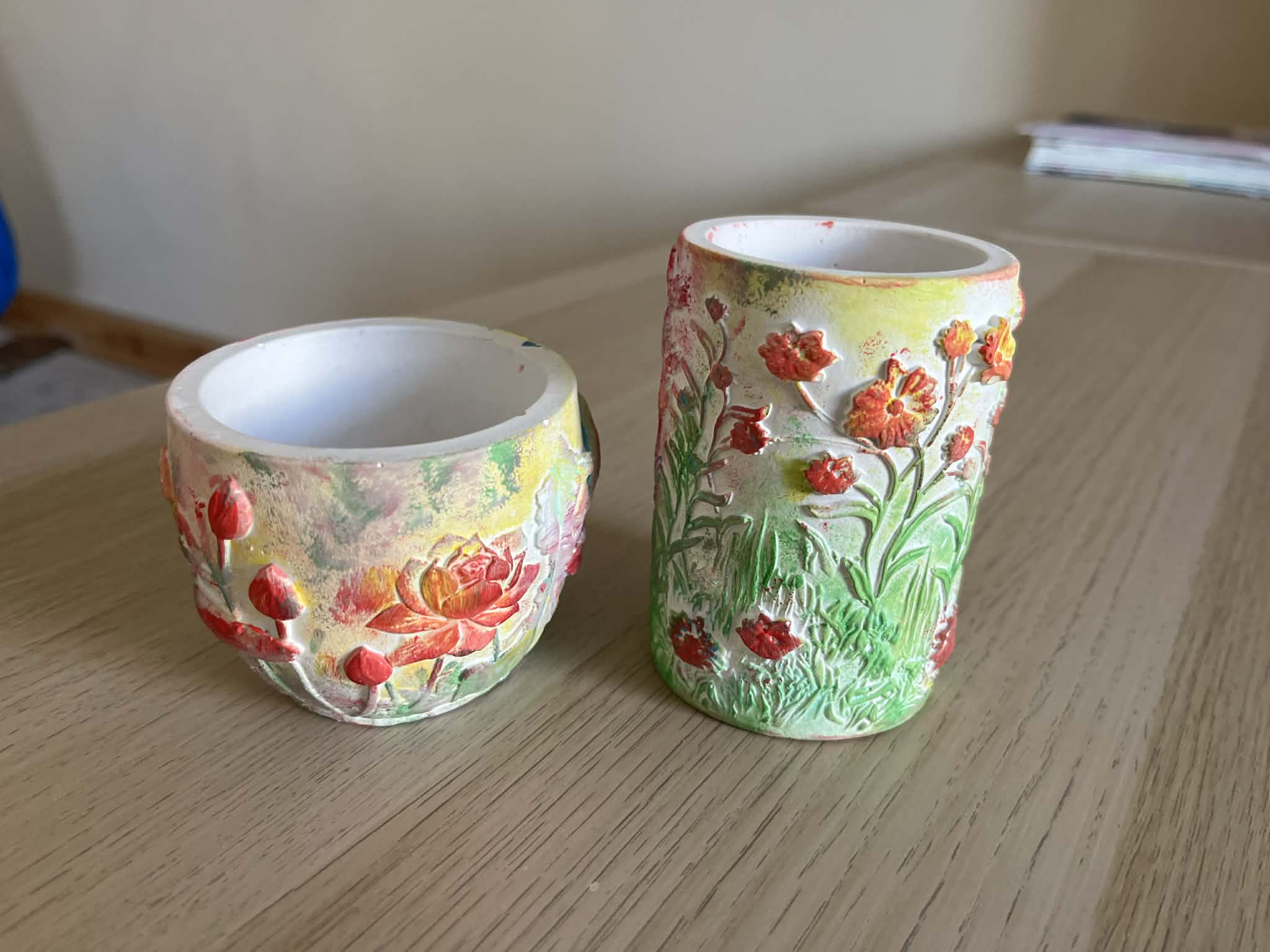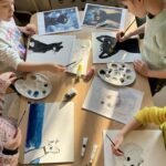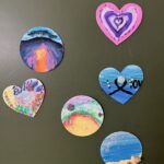 Malowanie farbami akrylowymi na magnesach pokrytych płótnem.