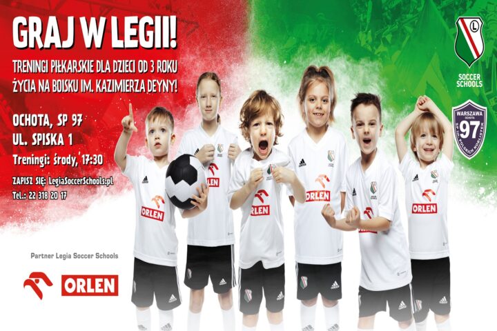 Zajęcia piłkarskie dla dzieci od 3 roku życia w Szkoła Podstawowa nr 97 na boisku im. Kazimierza Deyny! Treningi w każdą środę o 17:30 a start już we wrześniu!Zapisy trwają: www.LegiaSoccerSchools.pl – czekamy na Was na boisku!